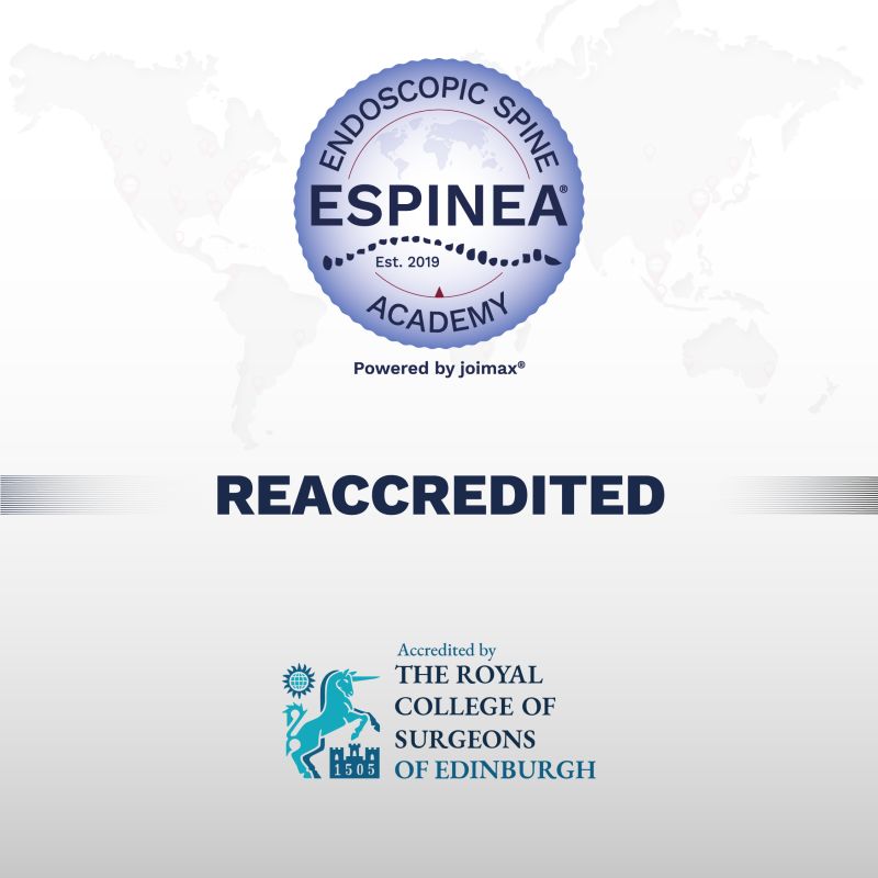 We are proud to announce the successful reaccreditation of ESPINEA® Academy by the The Royal College of Surgeons of Edinburgh (RCSEd) for another 5 years!